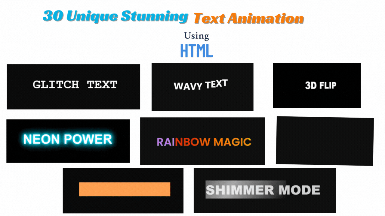Bring your websites to life with this handpicked collection of 30 eye-catching text animations crafted using pure HTML (with CSS magic)! Whether you're a developer, designer, or creative, these ready-to-use snippets will instantly level up your web projects, landing pages, portfolios, or banners.